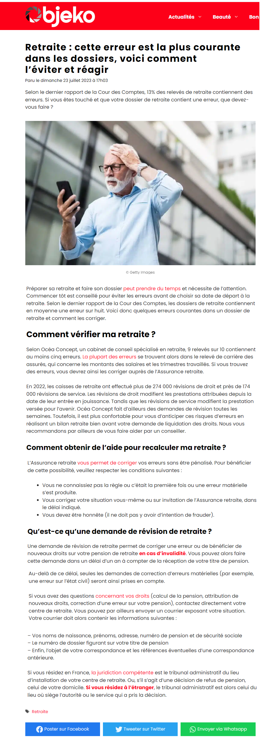 Parution Objeko : L’erreur la plus courante dans les relevés de retraite